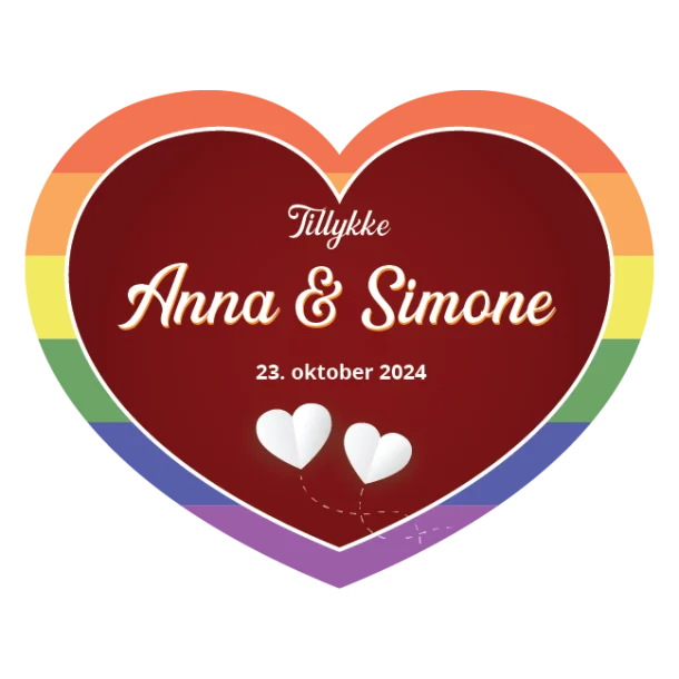 Dit valg af Pride Bryllupsskilt Hjerte er ikke bare en investering i jeres bryllupsdekorationer, det er en investering i et stærkt og positivt budskab om kærlighedens universelle kraft. Vis jeres engagement i en verden, hvor kærlighed kender ingen grænser.