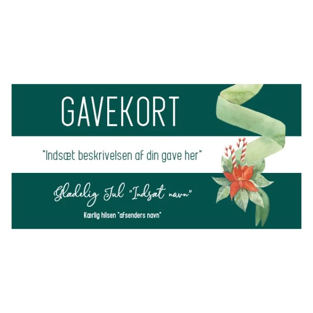 Gør julen lysere og gør gavekøb til en leg for dine kunder ved at tilbyde dem en smagfuld og indbydende måde at give den perfekte gave på. Køb dit Gavekort julegave grøn skilt i dag og skab en uforglemmelig gaveoplevelse, der vil blive husket længe efter sneen er smeltet.