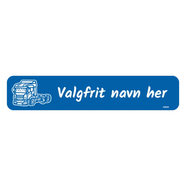 Vores blå truckerskilt er mere end bare et stykke tilbehør; det er et vardetegn for din profession. Det giver lastbilen et professionelt og personligt touch samtidig med, at det kommunikerer til verden omkring dig. Med et navn og en lastbil afbildet i høj kvalitet, bliver dit køretøj et rullende visitkort, der taler for din virksomhed eller personlige brand hver gang du er på farten.