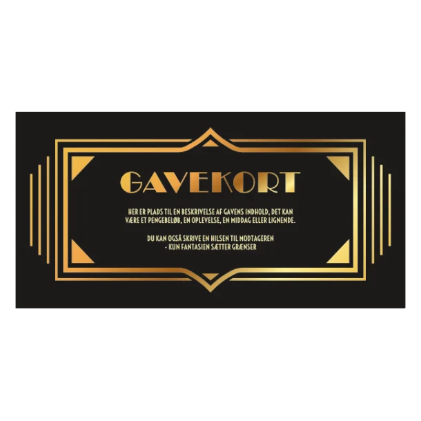 Noget så simpelt som et gavekort kan være en utrolig velsignelse, så hvorfor ikke gøre det med stil? Bestil vores Gavekort Vintage Art Deco i dag, og se lyset i modtagerens øjne, når de indser, at de har fået mere end bare en gave – de har fået en oplevelse for livet.