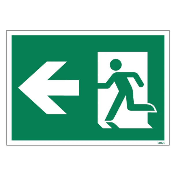 Med et klart fokus på sikkerhed, universel designforståelse, alsidige materialer og et estetisk tiltalende udseende, er vores “Exit mod venstre” skilt det oplagte valg for din ejendom. Gør sikkerhed til en prioritet og forsyn dine rum med skiltning, der styrer folk sikkert i retning af udgangen når det virkelig gælder.