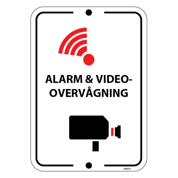 Hos e-skilte.dk finder du det essentielle Alarm og Videoovervågningsskilt til at øge sikkerheden og aktivt forebygge kriminalitet på din ejendom. Vores skilte er designet til at sende et tydeligt budskab om beskyttelse. Perfekte for både erhvervs- og privatbrug, fra den detaljerige butiksfacade til det personlige hjem.