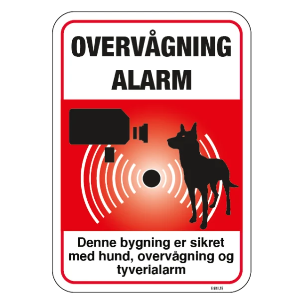 Overvågning Alarm Denne bygning er sikret med hund, overvågning og tyverialarm skilt