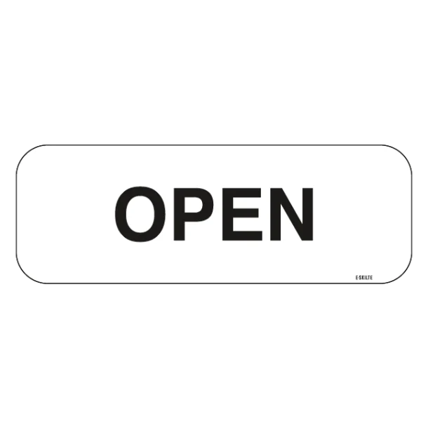 Med et ‘Open hvidt skilt’ sendes et klart og tydeligt signal til dine potentielle kunder om, at de er velkomne. Den rene hvide baggrund sørger for, at teksten “Open” står skarpt og er synlig fra afstand, så der ikke er nogen tvivl om, at her er åbent for business.