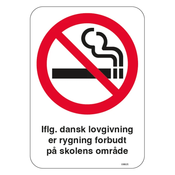 Vis, at din skole går forrest i kampen for en sund fremtid, og hav “Iflg. dansk lovgivning er rygning forbudt på skolens område skilt” som et synligt bevis på dette. Bestil dit skilt i dag og gør en positiv forskel for alle, der betræder dit skoleområde!