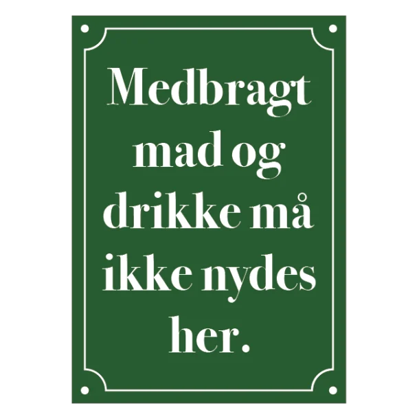 Gør det klart for dine kunder med et “Medbragt mad og drikke må ikke nydes her” skilt
