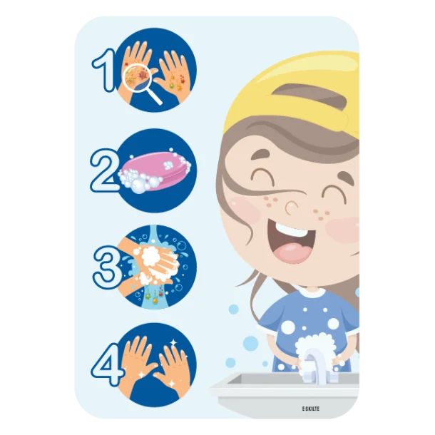 Alle vores håndvask-skilte er designet med tydelige, letforståelige instruktioner og grafik, der klart angiver trinene for korrekt håndvask. Professionelt designet for at fange opmærksomheden og fremme overholdelse af hygiejnestandarder.
