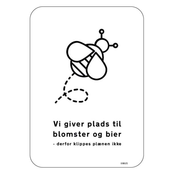 Er du engageret i at beskytte vores vigtige pollinatorer og fremme biodiversiteten i dit lokalområde? Vores nye skilt “Vi giver plads til blomster og bier – derfor klippes plænen ikke” kommunikerer netop dette budskab klart og tydeligt. Sæt et tydeligt signal i din have, ved boligforeningen eller i det offentlige rum, om at du er en del af løsningen for et rigere dyre- og planteliv.