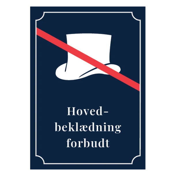 Uanset hvor du placerer vores Hovedbeklædning forbudt Klassisk skilt, leverer det sit budskab med autoritet og stil. Det passer diskret ind i enhver indretning og sikrer, at alle – uanset sprogkundskaber – kan forstå det klare budskab om at fjerne hovedbeklædning, hvad enten der er tale om hatte, huer, hovedtørklæder eller andre former for beklædning.