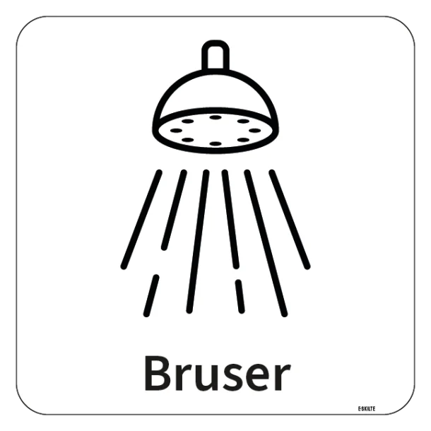 Vores skilt har et klart og enkelt pictogram af en bruser, som er letgenkendelig og forståelig for alle brugere uanset sproglig baggrund. Det er med til at skabe en inkluderende og imødekommende atmosfære, hvor alle føler sig velinformerede om faciliteternes placering.
