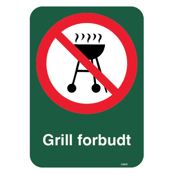 Et “Grillning forbudt” skilt tjener som en klar og umisforståelig påmindelse for alle, at grillning ikke er tilladt i bestemte områder. Det kan være essentielt i tørre perioder, i nærheden af brandfarlige materialer, eller i områder med stor menneske- og dyretrafik, hvor risikoen ved åben ild skal minimeres.