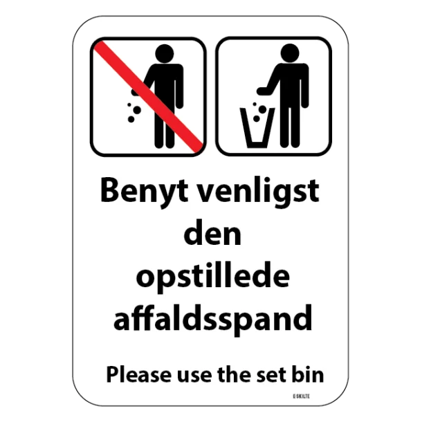 Benyt venligst den opstillede affaldsspand skilt