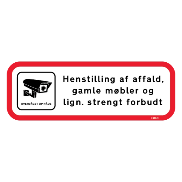 Er I på udkig efter en løsning, der effektivt stopper uønsket henstilling af skrald og gamle møbler i jeres område? Med vores “Henstilling af affald, gamle møbler og lign. strengt forbudt – Området overvåges” skilt, bliver jeres bofællesskab, erhvervsområde eller offentlige plads holdt ren og indbydende for alle. Skiltets klare budskab understøtter en pæn og ordentlig adfærd, hvilket gør det til en essentiel investering for en velplejet ejendom.