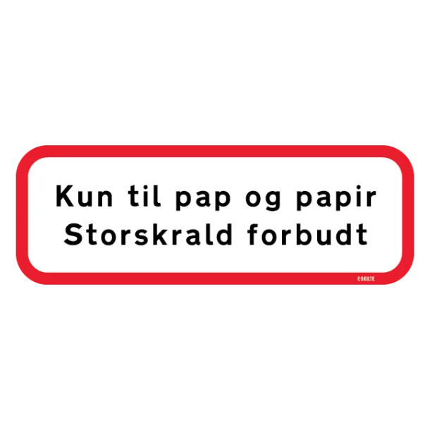 Kun til pap og papir, storskrald forbudt skilt