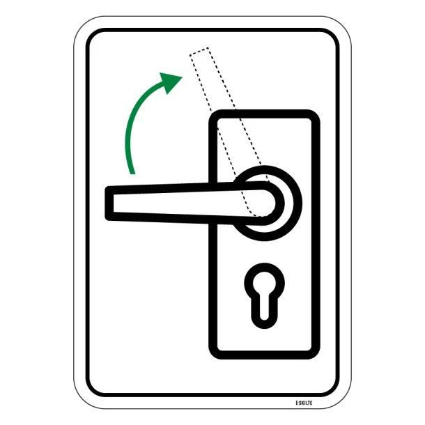 - Universel forståelse: Piktogrammet og teksten er øjeblikkeligt forståeligt og viser effektivt, hvordan man låser op og åbner døren ved at skubbe håndtaget op.