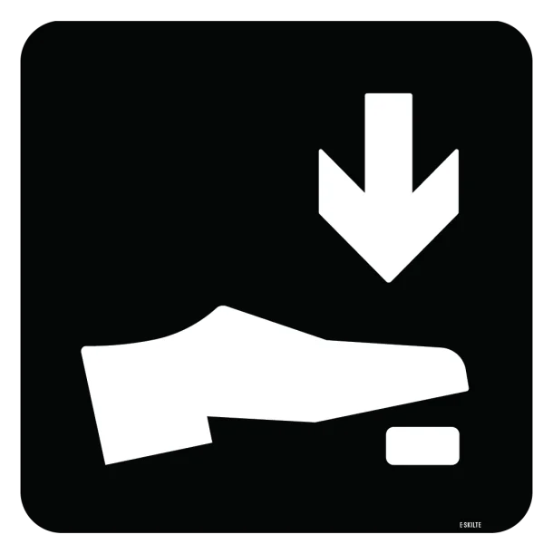 - Klart budskab: Det intuitive piktogram gør det nemt at forstå, at man skal trykke ned med foden. Det sikrer en tilgængelig kommunikation til alle, uanset modersmål.
