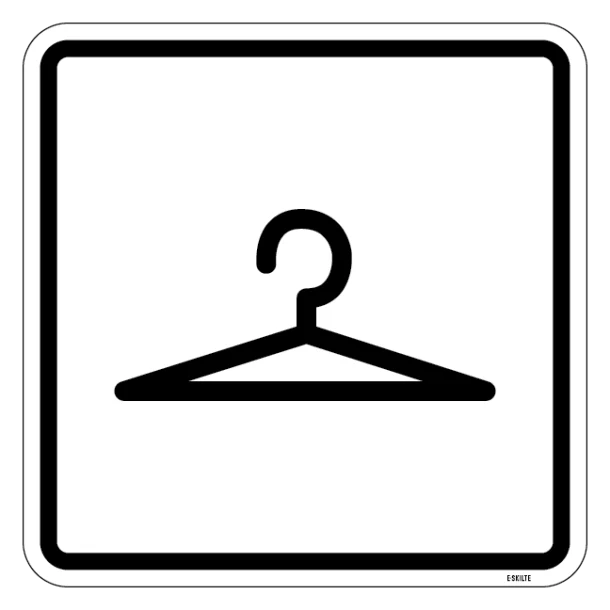 Dette skilt står for klarhed og bekvemmelighed. Ved brug af velkendte symboler kommunikerer det hurtigt og effektivt, hvor gæster kan forvente at finde garderobefaciliteter. Det fjerner enhver tvivl og gør det muligt for dine gæster at føle sig velorienterede i dine lokaler.