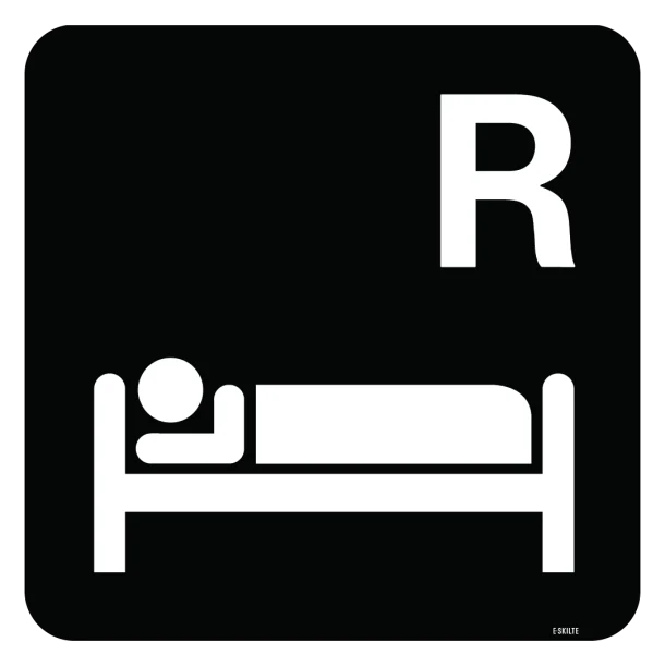 Gør opmærksom på hvilemuligheder med ‘Sove mulighed R piktogram skilt’