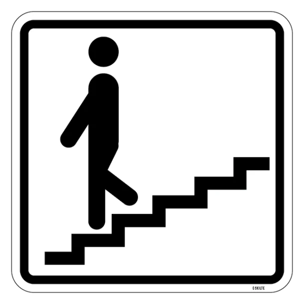 Universel forståelse: Med et klart og letforståeligt ikon af en trappe signalerer skiltet tydeligt, at der er trappetrin nedad, hvilket øger bevidstheden og sikkerheden.