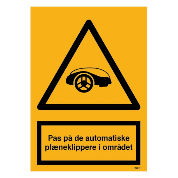 Pas på de automatiske plæneklippere i området advarselsskilt