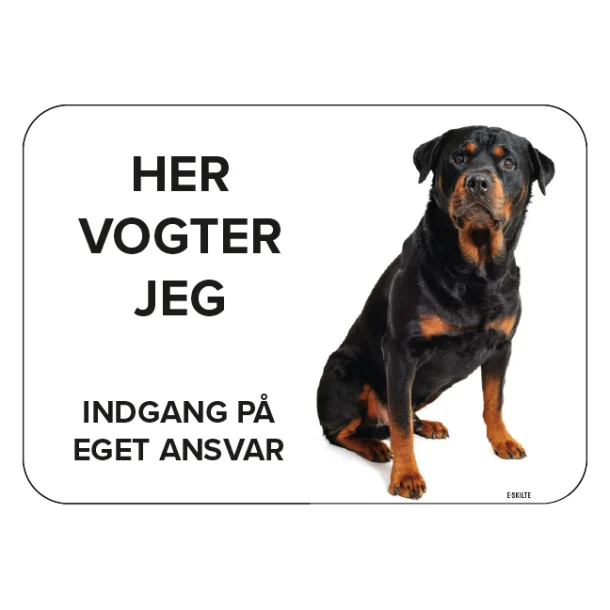 Dit hjem er dit slot, og din Rottweiler er din trofaste ridder. Med vores skilt bliver denne duo endnu stærkere. Tag skridtet i dag og bestil et skilt, der står som symbol på tryghed og autoritet. Besøg vores webshop nu og gør en investering i dit hjem, din families velbefindende og den ro, som kun et tydeligt advarselsskilt kan tilbyde.