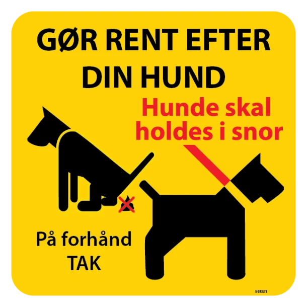 - Visuel påvirkning: Den markante gule farve fanger øjet og sikrer, at skiltet bemærkes af hundeejere og forbipasserende.