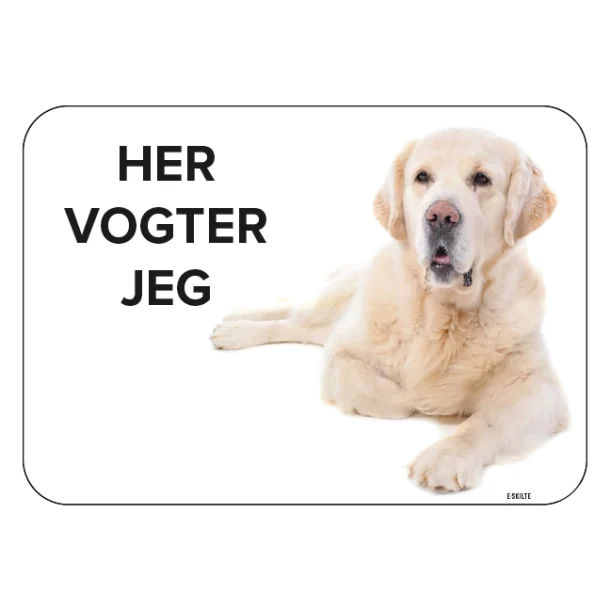 Udtryk din kærlighed til din firbenede ven med “Golden Retriever – Her bor jeg” skiltet