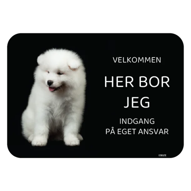 Giv din hund den ære den fortjener med “Her bor jeg skilt – Samoyed”