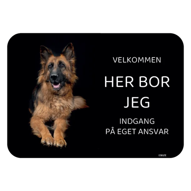 Skab tryghed ved din indgang med “Her bor jeg” Schæferhund skilt
