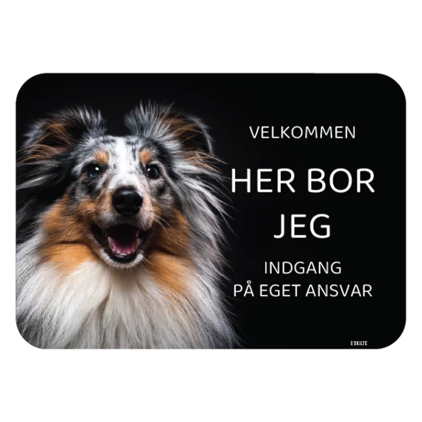 At have en Shetland Sheepdog, eller Sheltie, som familiemedlem er en unik og berigende oplevelse. De er kendt for deres intelligens, loyalitet og smukke pels. Med vores “Her bor jeg skilt hund Shetland sheepdog Sheltie”, kan du nu vise alle, hvem der regerer i dit hjem og i dit hjerte.