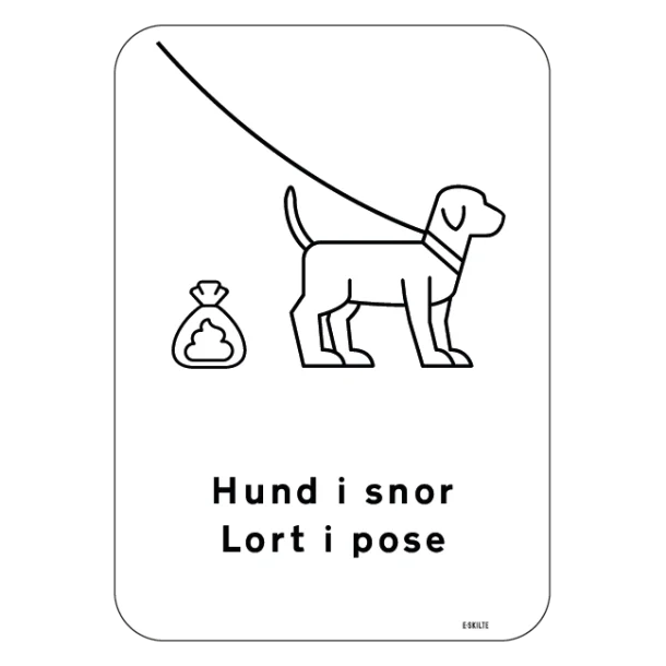 Med klare og forståelige budskaber hjælper dette skilt med at opbygge en kultur af ansvar og respekt i lokalområdet. Det er ikke kun en reminder til hundeejere om at holde deres kære venner i snor, men også en påmindelse om at rydde op efter deres efterladenskaber, hvilket bidrager til et renere og mere indbydende miljø for alle.
