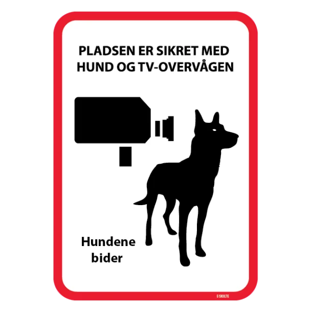 Dette skilt kombinerer den naturlige autoritet af en hunds tilstedeværelse med den moderne teknologi af TV-overvågning. Med dette skilt, vil enhver potentiel ubuden gæst hurtigt forstå, at din ejendom er sikret effektivt på to fronter: den naturlige og den teknologiske. Det er en kraftfuld kombination, der har vist sig at være en af de mest effektive måder at forebygge indbrud og tyveri på.