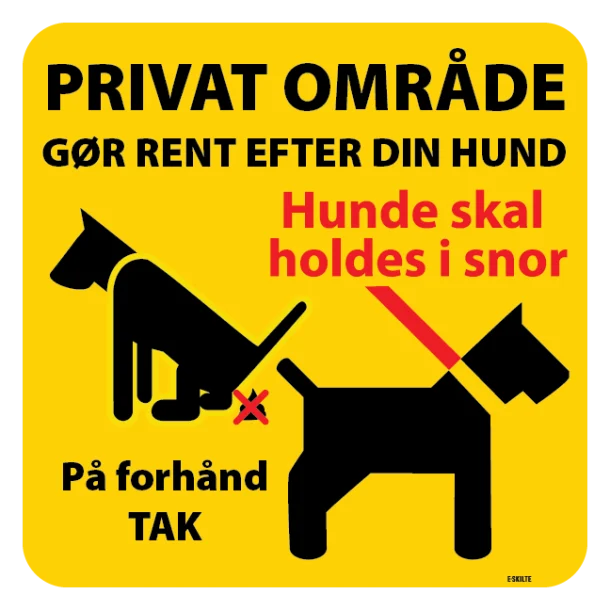 Har du brug for at sikre at dit privat område er tydeligt markeret, og at hundeejere overholder god skik på din ejendom? Vores “PrivatOmråde – gør rent efter din hund – hund skal holdes i snor” skilt er den perfekte løsning. Dette højkvalitetsskilt er udformet til at kommunikere budskaberne klart og tydeligt, så der ikke er nogen tvivl om reglerne på dit område.