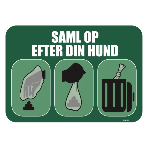 Opfordr hundeejere til at tage ansvar for deres kæledyr og hold dine områder rene og indbydende. Vælg vores “Saml op efter din hund” skilt og gør en synlig forskel!