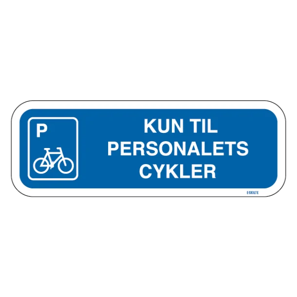 - Klart budskab: Med dette skilt bliver det ikke til at tage fejl. “Kun til personalets cykler” er skrevet i et letlæseligt font med en kontrastfuld blå farve, der fanger opmærksomheden.