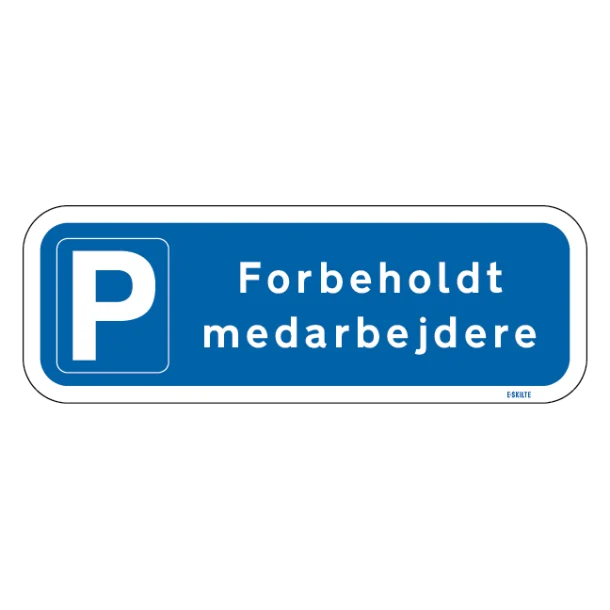 Med dette skilt sikrer du, at dine medarbejdere altid har et sted at parkere, så de kan starte deres arbejdsdag uden stress over at finde en parkeringsplads. Det er en enkel men yderst effektiv løsning, der viser omtanke for dit personales velbefindende og bidrager til en mere strømlinet arbejdsdag.