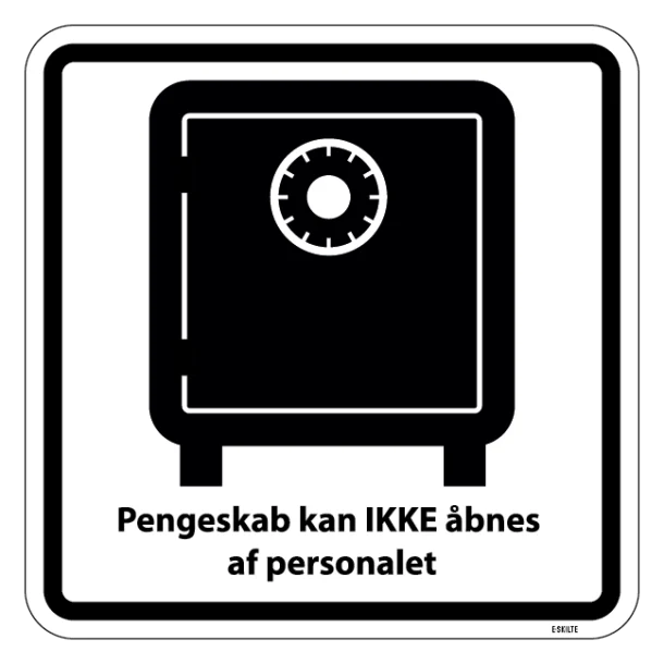 Med et tydeligt piktogram og tekst sikrer du, at budskabet om at pengeskabet ikke kan åbnes af personalet, forstås hurtigt og klar af både medarbejdere og kunder. Dette kan ikke alene forebygge misforståelser, men også styrke tilliden hos kunder, der ser, at du tager sikkerheden seriøst.
