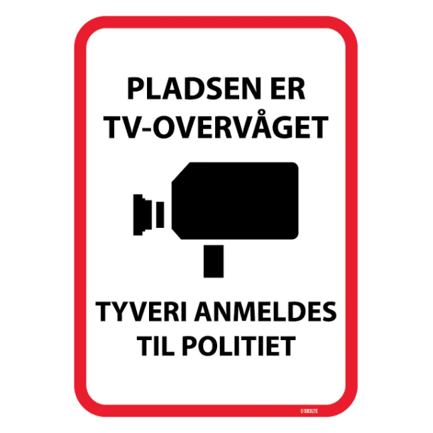 Investér i “Pladsen er TV overvåget Tyveri anmeldes til politiet skilt” i dag, og send et utvetydigt budskab, der kan have en stor indflydelse på sikkerheden og sindsroen på din ejendom. Køb skiltet nu, og tag det første skridt mod en mere sikker hverdag.