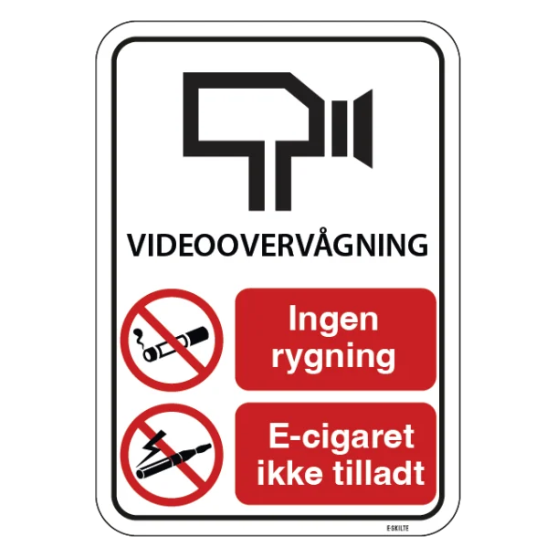 Vores skilt kommunikerer klart to centrale politikker: at området er under videoovervågning og at det er et røgfrit område. Dette bidrager til både at forebygge kriminel adfærd og at opretholde et sundt miljø for alle tilstedeværende.
