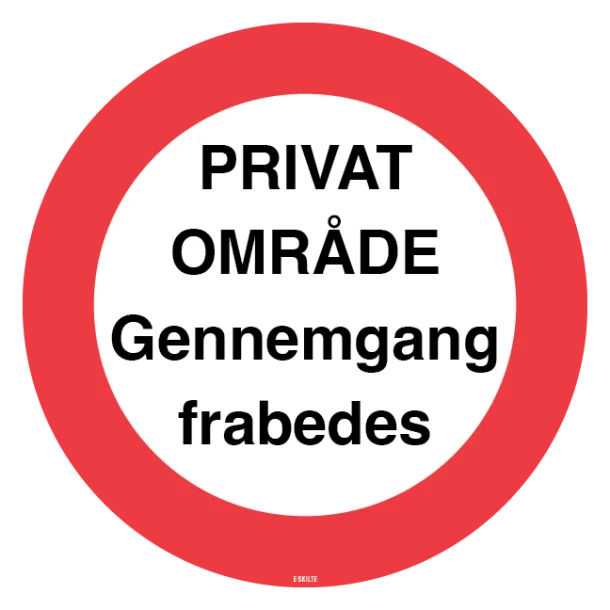 I vores webshop finder du “Privat område – gennemgang frabedes” rundt skilt til ethvert behov. Vælg mellem forskellige materialer og bestil dit skilt i dag, så du kan føle dig tryg og sikker i morgen. Dit private område fortjener at blive respekteret – og med dette skilt bliver det budskab formidlet højt og klart.