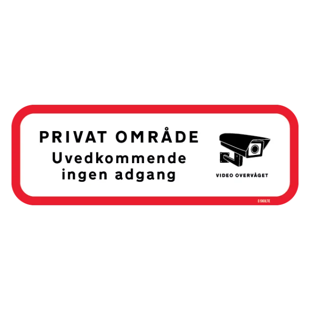 Foruden tekst om videoovervågning og privat område, supplerer tydelige symboler budskabet yderligere, så det hurtigt kan forstås af alle, uanset sproglige barrierer.
