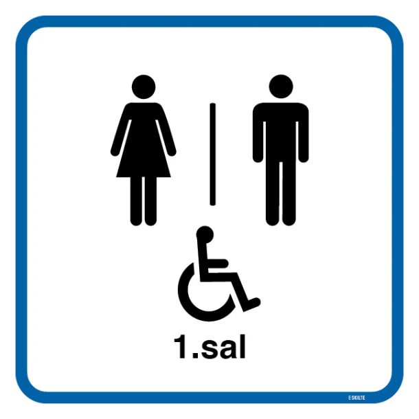 Let dine gæster eller kunder finde vej til toiletterne med et klart og tydeligt “Dame, Mand og Handicap toilet på 1. sal skilt”. Vores skilt er designet til at hjælpe mennesker af alle evner og sikre, at ingen går forgæves på jagt efter toiletfaciliteterne.