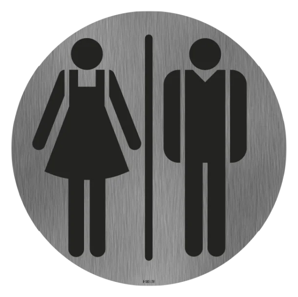 Er du på udkig efter et stilsikkert og moderne skilt til at angive hvor damernes og herrernes toiletter er beliggende i din virksomhed eller offentlige institution? Med vores elegante “Dame mand toiletskilt rundt på børstet stålfolie”, får du et skilt med et tidløst og eksklusivt design, der passer ind i enhver kontekst og tilfører et strejf af kvalitet og finesse til dine faciliteter.