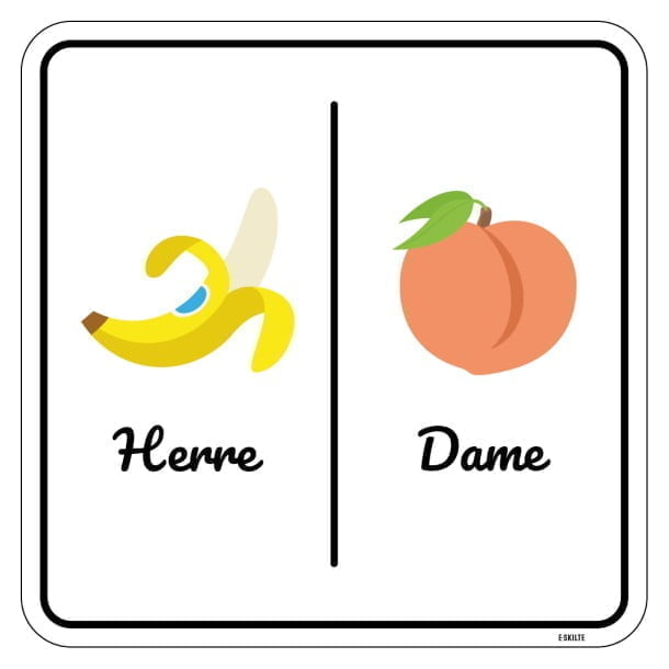 Vores “Frugt herre og dame toiletskilt” formidler et klart budskab takket være sin universelle symbolik. Skiltet tilbyder en legende men genkendelig guide til toiletfaciliteterne og sikrer, at både besøgende og kunder nemt kan finde vej.