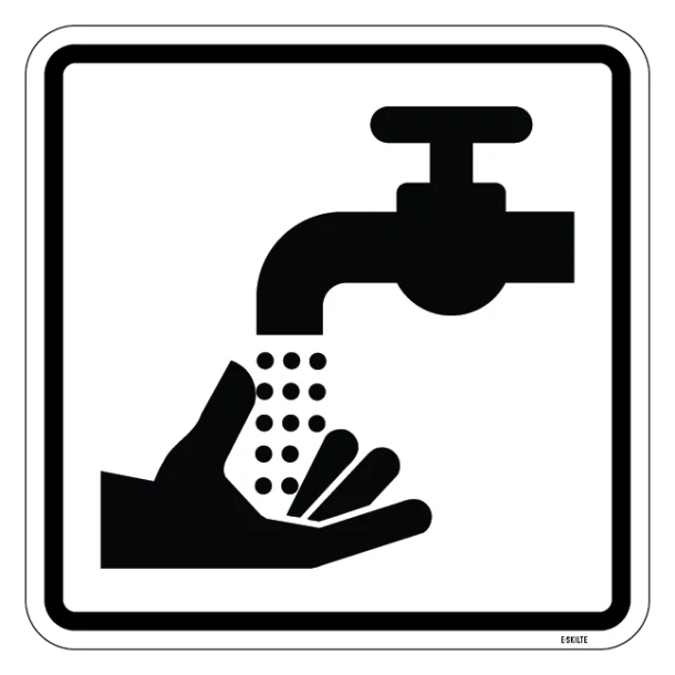 Vores håndvask piktogram skilt er designet til at være øjeblikkeligt genkendeligt. Med et klart og universelt forståeligt piktogram sikrer vi, at beskeden om vigtigheden af håndvask formidles hurtigt og effektivt til alle, der ser skiltet.