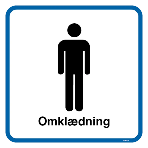 Med et Mand Omklædning skilt fra vores sortiment får dit omklædningsrum en synlig og forståelig markør, som alle nemt kan følge. Skiltet viser tydeligt, at området er reserveret til mænd, hvilket sikrer en ubesværet og respektfuld brug af omklædningsfaciliteterne. Skiltets klare grafik og design sørger for at undgå forvirring og bidrager til at opretholde orden.