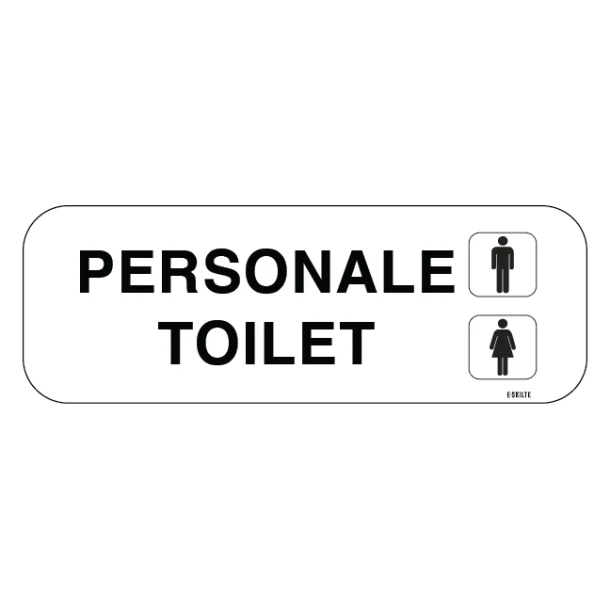 Hvis du ønsker et praktisk, elegant og funktionelt toiletskilt, som både respekterer og hjælper alle brugere i din organisation, så er vores PERSONALE Toilet mand dame: Toiletskilt en fremragende investering. Bestil dit skilt i dag og forbedr straks orienteringen i din bygning.