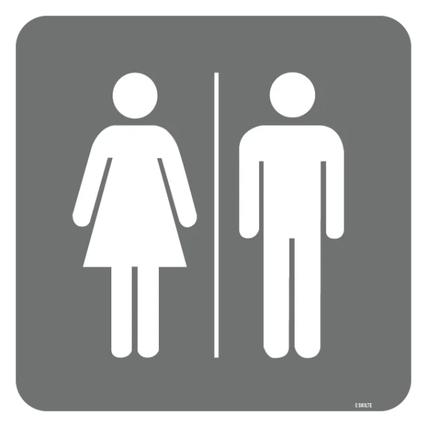Med sit minimalistiske design passer dette skilt perfekt ind i enhver indretning uden at forstyrre det æstetiske udtryk. De rene linjer og den neutrale gråfarve sikrer, at skiltet nemt kan integreres i forskelligartede miljøer – fra det moderne kontorbyggeri til den hyggelige café eller det travle shoppingcenter. Det universelle piktogram for damer og herrer er øjeblikkeligt genkendeligt og sørger for, at alle nemt kan orientere sig.