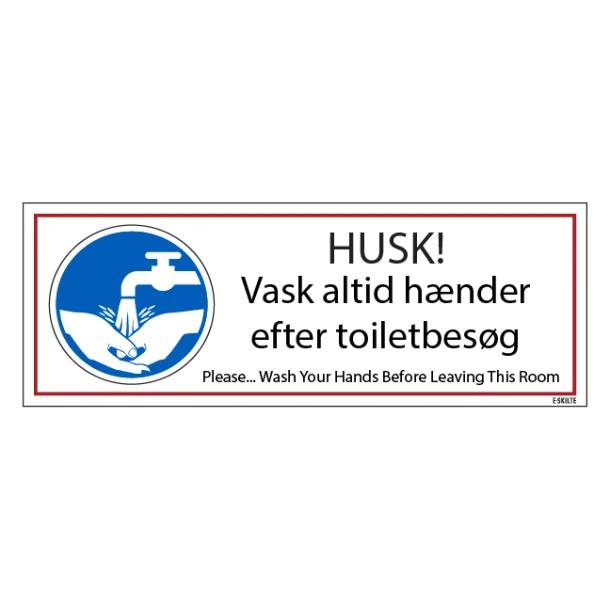 Hold din virksomhed eller offentlige institution sund og sikker med et klart budskab: “Vask altid hænder efter toiletbesøg” skiltet. Denne effektive påmindelse er ikke kun et tegn på omtanke for hygiejnen, men også en direkte appels til alles ansvarlighed. Vores kvalitetskilt sikrer, at beskeden om vigtigheden af håndhygiejne når ud til alle, hver eneste gang de besøger toiletfaciliteterne.