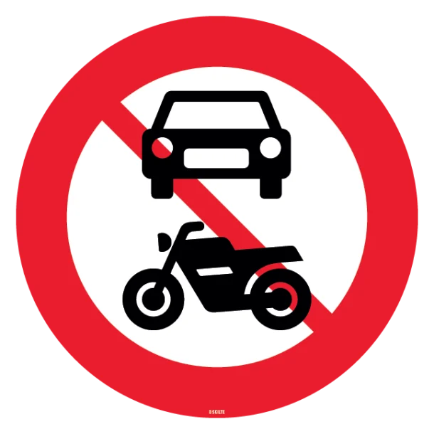 Er du på udkig efter en tydelig måde at formidle vigtige trafikregler på? Vores C22 Motorkøretøjer forbudt skilt er den ideelle løsning til at angive zoner, hvor motorkøretøjer ikke har adgang. Dette skilt kommunikerer klart og tydeligt, at et område er reserveret til fodgængere, cyklister, eller til anden specifik brug, hvor biler, motorcykler og andre motordrevne køretøjer ikke er tilladt.